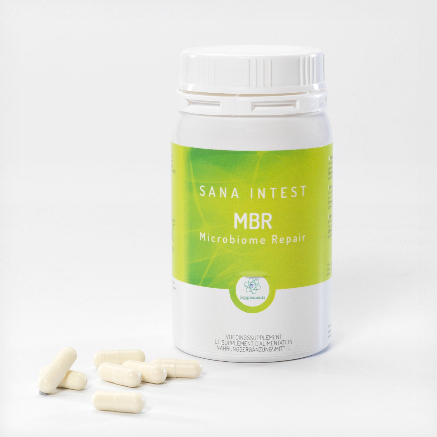 Eine MBR-Kapsel von Sana Intest mit 492 mg enthält eine proprietäre Mischung aus Amylasen, Proteasen, Lipasen, Laktase, Galctosidase, Cellulase, Maltase, Katalase, Pincinase, Peptidase, Xylanase, Inverstase, Glukoseoxidase