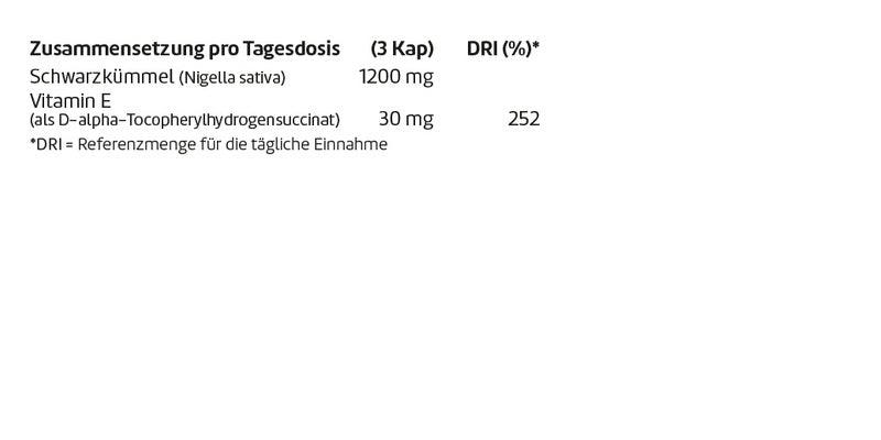 Schwarzkümmel, Thymoquinone, Vitamin E, Kapseln aus Hydroxypropylmethylcellulose
